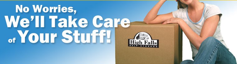 The self-storage industry has exploded over the past several years. Today’s marketplace offers many diverse options for you the consumer to choose from. At High Falls Self Storage our friendly knowledgeable staff strives to make your storage experience enjoyable, safe, and fairly priced. With one quick call or office visit, our staff with educate you on the High Falls Self Storage philosophy or “storage partnership”. Along with your padlock, every unit has its own individual alarm that is monitored via computer. You can access your personal storage unit from 6:00 am to 9:00 p.m. through our password access exterior keypad. Our warehouse is design for easy loading and unloading of your things. With many different size units to choose from, we believe High Falls Self Storage will give you genuine storage satisfaction. Our goal is to provide the very best service in the industry and we are confident that given the opportunity you will experience the same reliable and professional service that sets the standard for the industry.
