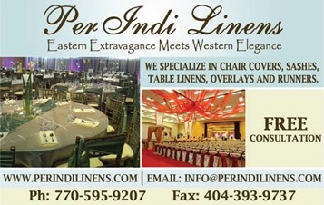 Per Indi Linens is Eastern extravagance meets Western elegance. We specialize in chair covers, sashes, table linens, overlays and runners.