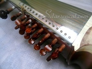 Sitars Encat there are sitars usually built only by the order in stock. Find them published in this section. They are all in our store, already checked and ready to be sent. Check the sitar is really made of tun or teak wood; even though it is rare to find teak wood sitars in shops you can recognize it for its accentuated streaks. This is a very important aspect. A star made of a low-quality wood will probably not resist the change of pressure in your flight back home, and in case it would, its life would not belong.