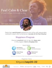 The Art of Living offers stress-elimination programs which include breathing techniques, meditation, and yoga. These programs have helped millions around the world to overcome stress, depression and violent tendencies. Founded in 1981 by Sri Sri Ravi Shankar, The Art of Living Foundation is a not-for-profit, educational and humanitarian NGO (Non-Governmental Organisation). The Art of Living Foundation is in partnership with the International Association for Human Values, sharing our breathing and meditation techniques and empowerment curriculum with communities of need.